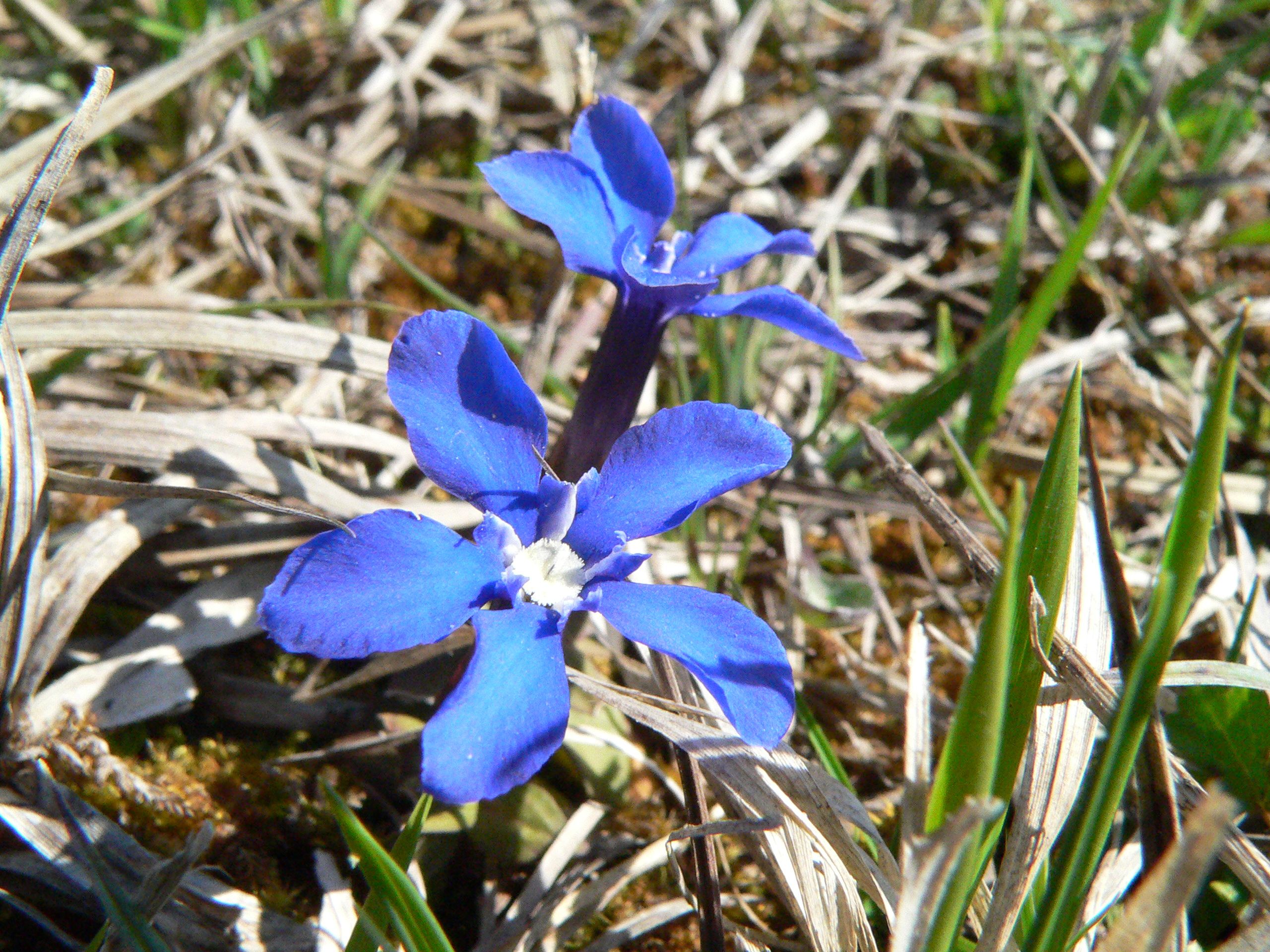 Schon sehr früh im April leuchten die blauen Blüten des sehr seltenen Frühlingsenzians. Diese auch "Schusternagerl" genannte Art ist ein Eiszeitrelikt und gedeiht nur auf ganz wenigen Magerrasen des Landkreises. Die mehrjährige krautige Pflanze von geringer Wuchshöhe wird durch Schmetterlinge und vor allem von Hummeln bestäubt. Die Verbreitung der Samen übernehmen Ameisen und der Wind.