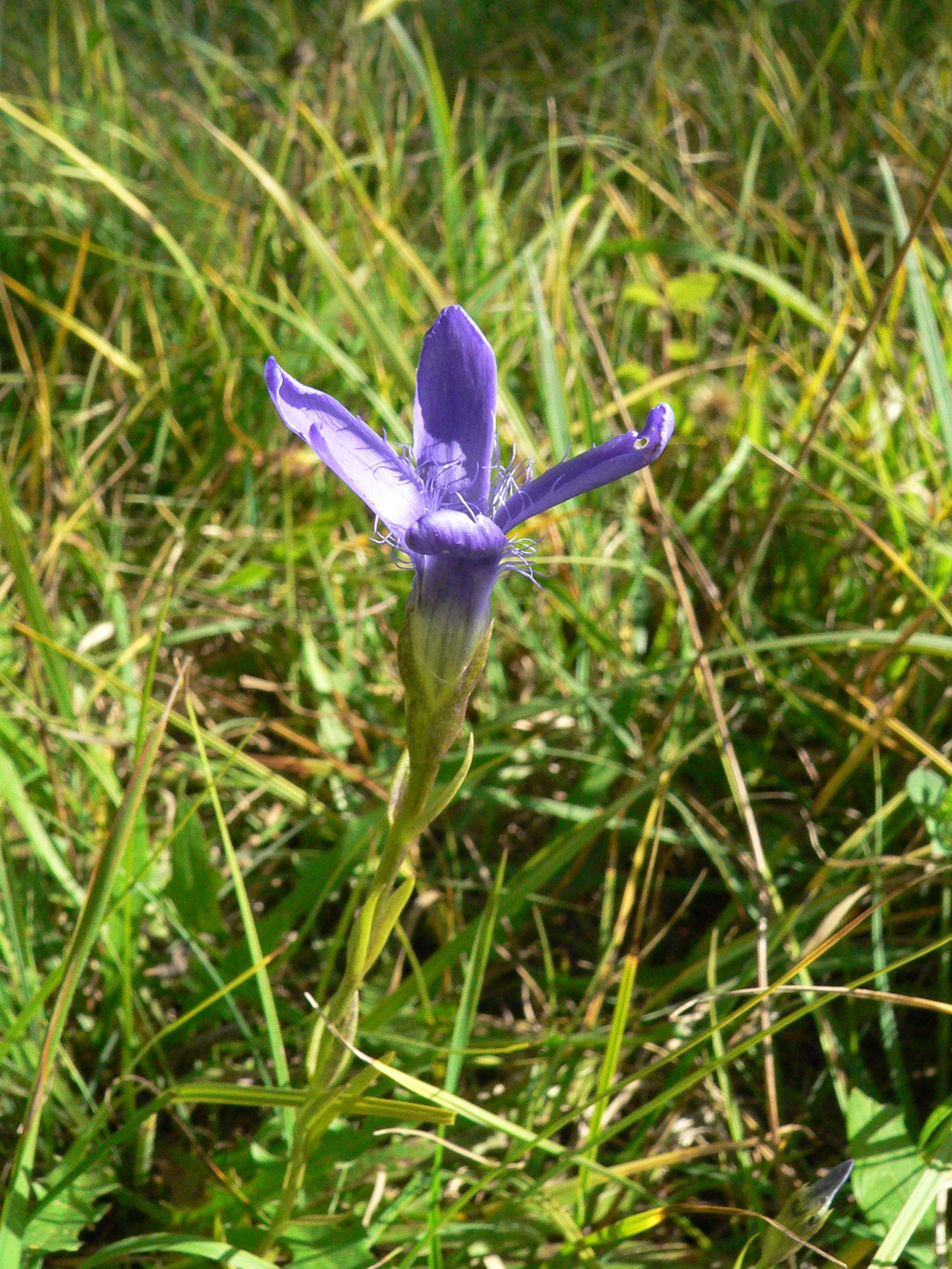 Der violett blühende Deutsche Enzian ist eine einjährige, manchmal zweijährige Pflanze mit einer Wuchshöhe von 5cm bis maximal 30 cm mit bis zu 40 Blüten! Die Blütezeit reicht vom ausgehenden Sommer bis in den Spätherbst. Er blüht oft gemeinsam mit dem Fransenenzian. Als Standort bevorzugen die beiden Enzianarten lehmige, kalkreiche Böden und besiedeln Magerrasen, Flachmoore, Wiesen und Schafweiden. Gefährdungsursachen sind: die Eutrophierung von Böden durch Düngereintrag und Immissionen, die Zerstörung von kleinräumigen Sonderstandorten, die Verbuschung und Aufforstung von Magerrasen, Immissionen, das Fehlen von kleinflächigen Bodenverwundungen.